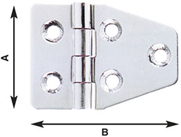 In acciaio finitura Cromaiting. Cerniere a metraggio leggere con fori di fissaggio d.mm.4. Perno d.mm.2.