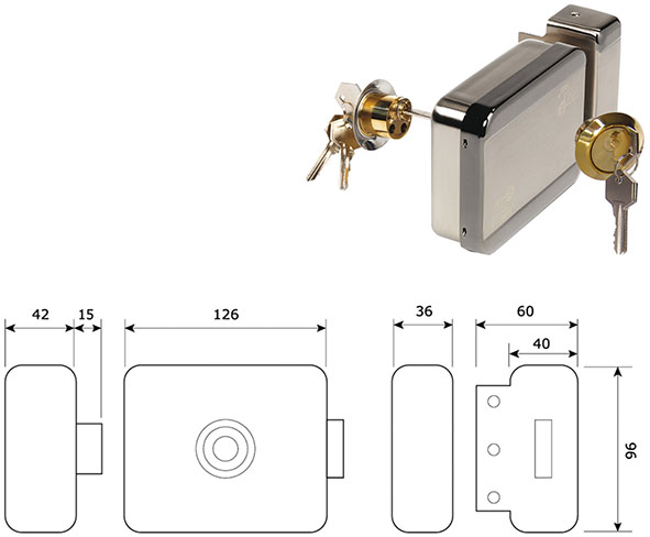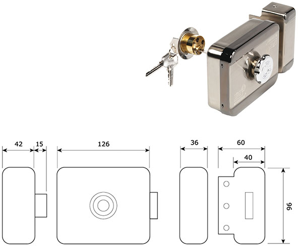 Serratura CHIAVE-POMOLO MOTORIZZATA da applicare per cancelli e portoni. In acciaio trattato. Reversibile. Mandata autobloccante. Pu? essere comandata con apparecchiature di Controllo Accessi. Entrata mm.60. In dotazione 3 chiavi e prolunga cilindro mm.40-90 (chiave ricambio ns.cod.880938). Alimentazione 12V dc/ac. IP53. Assorbimento: corrente di riposo 20mA, corrente di spunta 410mA.