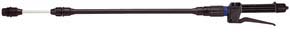 Getto regolabile fino a 80? con ghiera antitaccheggio. Scala graduata. Tasto sicurezza (ON-OFF). Valvola di sicurezza 3 bar e sfiato pressione a fine lavoro. Valvola che mantiene a lungo la pressione. Molle in acciaio inox. Asta in resina rinforzata. Certificate TUV.