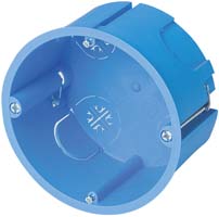 In tecnopolimero antiurto colore blu. Viti di fissaggio alla parete e inserti di bloccaggio in acciaio zincato. Conforme alle norma EN 60670-1:2005.