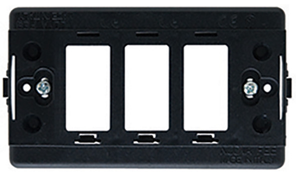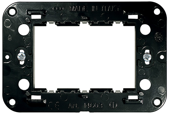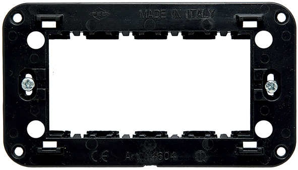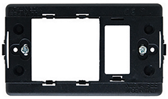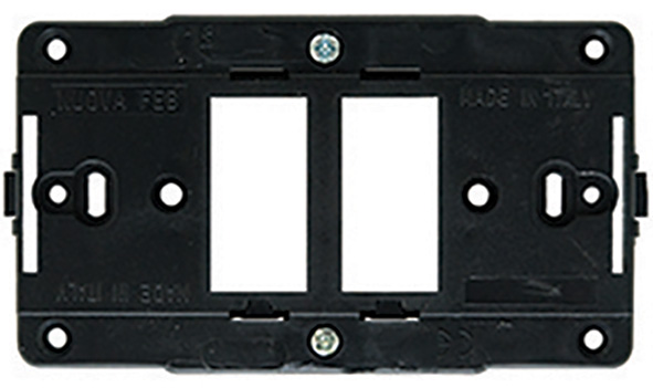 PER SCATOLA RETTANGOLARE. In policarbonato autoestinguente nero. Permettono l'attacco sia di placche a vite che a scatto.