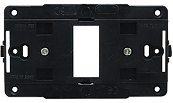Placca/supporto con viti per installazione su profilati o pannelli. 1 posto. Completo di scatola da incasso dedicata. Colore nero. Da montare su placche coprivano ns.cod.303250-55-57-66-67-68, in abbinamento al pulsante unipolare su/gi? TIPO BT-LIVING 4022 ns.cod.309969.