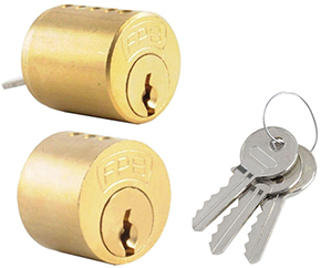Coppia cilindri in ottone ricambio per serrature FANGAZIO CL. Cilindro esterno 5 spine lunghezza mm.50, interno 3 spine. Diametro mm.25. In dotazione 3 chiavi (ricambio ns.cod.880472).