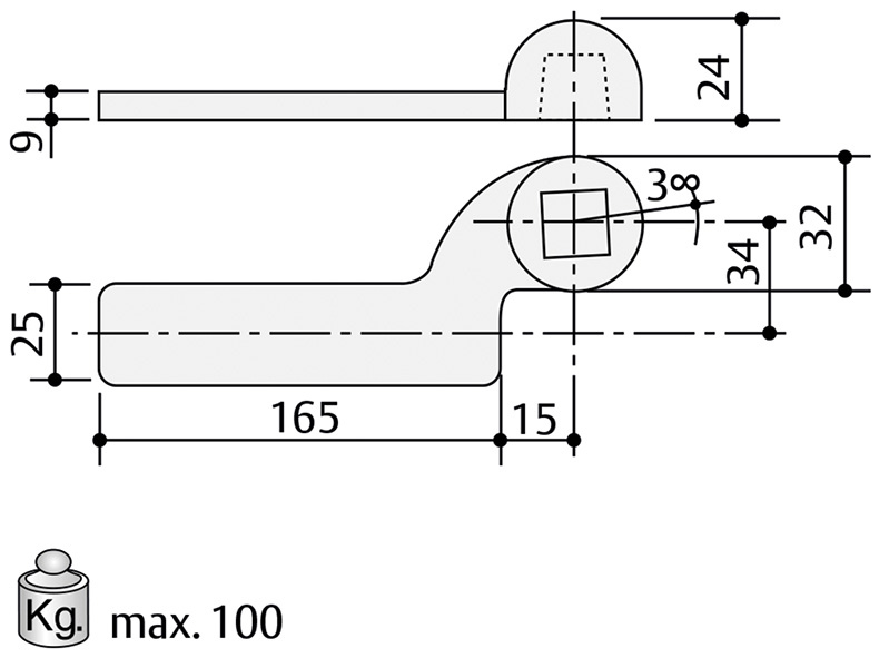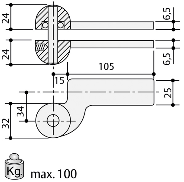 Forza FISSA EN1. Per porte larghezza cm.75, fino a max Kg.100. Apertura fino a 180?. 2 diverse valvole di regolazione per velocit? e colpo finale. Da ordinare a parte: piastra di copertura AC530 (ns.cod.400697).
