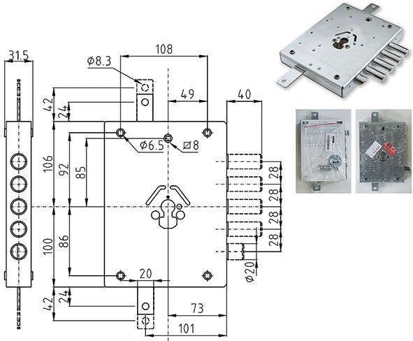 CONFEZIONE INDUSTRIALE IN BUSTA. Serratura triplice da applicare per porte blindate. Ad ingranaggi. Per cilindro europeo. Scrocco azionato dal quadro maniglia e dalla chiave. Cilindro e aste non compresi. Fori protezione cilindro con interasse mm.31.