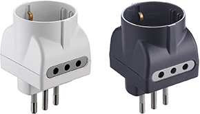 Adattatore triplo con 1 presa schuko 2P+T 10A. + 2 prese 2P+T 10A.