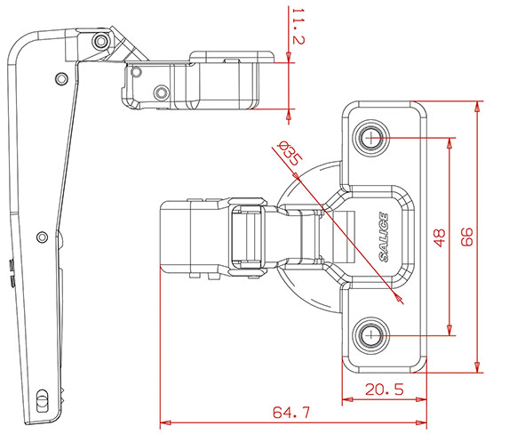 Cerniere serie 200 COMPLEMENTARI (anche per forti spessori). In acciaio nichelato. Chiusura automatica. Regolazione laterale, frontale, verticale. Apertura 94?. Profondit? mm.11. Diametro mm.35. Spessore anta da m.19 a 35.