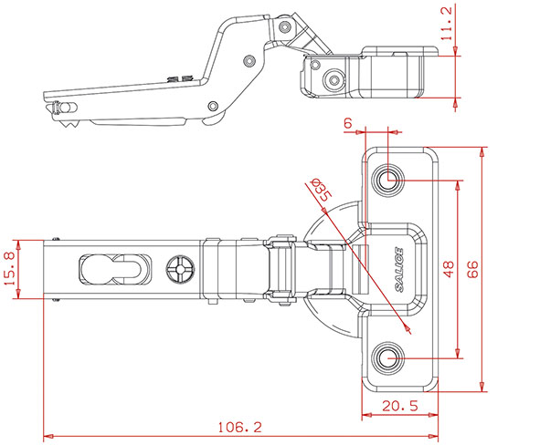 CERNIERE SALICE 110 GRADI C2A6P99