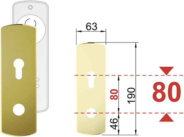 Per SERRABLINDA. Con foro maniglia d.mm.20 + foro cilindro sagomato. Dimensioni mm.190x63. Interasse mm.80.