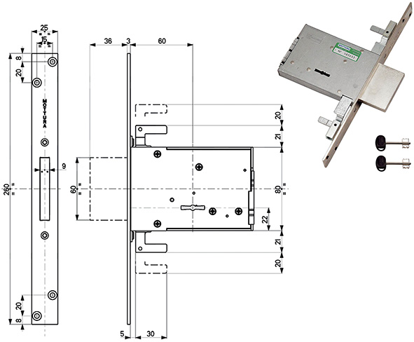 Serrature infilare doppia mappa TRIPLICE. Solo catenaccio 4 mandate corsa mm.36. Corsa aste mm.20. Attacco aste filettato M8. Frontale zincato. Reversibile. Contropiastra NON compresa (ns.cod.846025). In dotazione 2 chiavi art.92292/5 (ricambio ns.cod.845917).