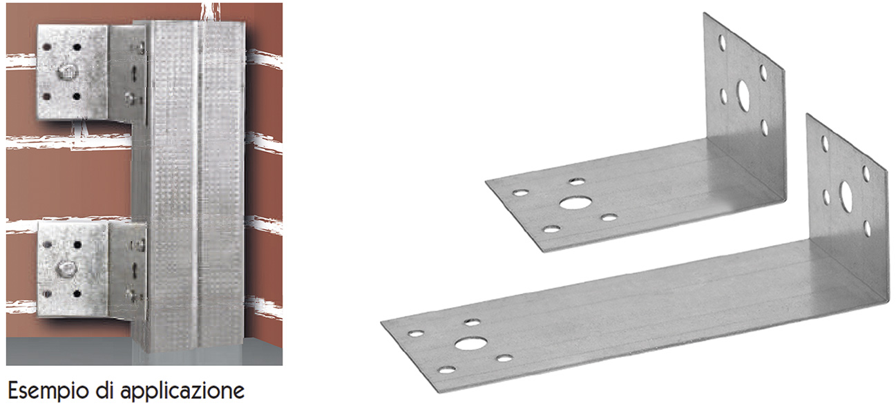 Squadrette a 5 fori in acciaio zincato. Utilizzo per la costruzione di contropareti, con distanziamento base profilato-parete da mm.60 a mm.120.