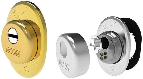 Protezione cilindro d.mm.50. CORPO IN ACCIAIO. Fori fissaggio M6 interasse mm.38. Spessore mm.25. Feritoia entrata chiave mm.3,5. Dotati di due sfere d'acciaio a protezione del corpo del cilindro e due sfere a protezione delle viti di fissaggio.