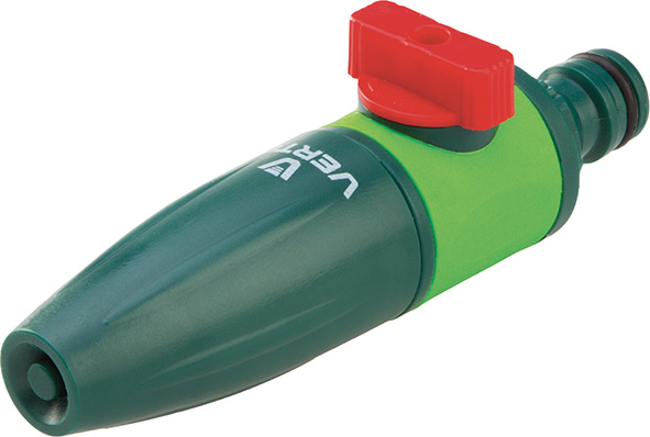 Irrigatore diritto con la possibilit? di chiudere il flusso d'acqua. La testina regolabile permette di impostare la forma del getto d'acqua da nebbioso a un flusso forte.