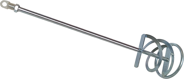 Frusta elicoidale in acciaio zincato, con 2 pale. Attacco M14. Materiale miscelato dal basso verso l'alto. Per colle, malte cementizie, gesso e materiali ad alta viscosit?.