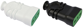 Professionali. Corpo in tecnopolimero ad alta resistenza al calore ed agli urti. Presa con alveoli in ottone, schermati contro i contatti accidentali e volontari.