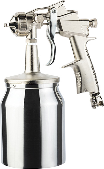 In metallo. Per verniciatura a spruzzo. Regolazione getto a rosa e ventaglio. Serbatoio inferiore capacit? gr.1000. Made in Italy.
