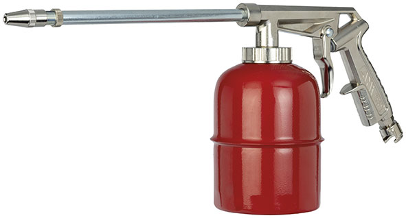 Pistola per lavaggio con nafta. Serbatoio in acciaio lt.1 filettato. Tubo erogazione esterno metallico, interno nylon. Made in Italy.