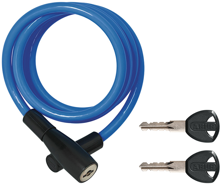 LIVELLO SICUREZZA ABUS 1. Cavo a spirale in acciaio d.mm.6 con rivestimento in plastica. Colori assortiti. Cilindro Abus e 2 chiavi. Chiave ricambio SILCA AB39.