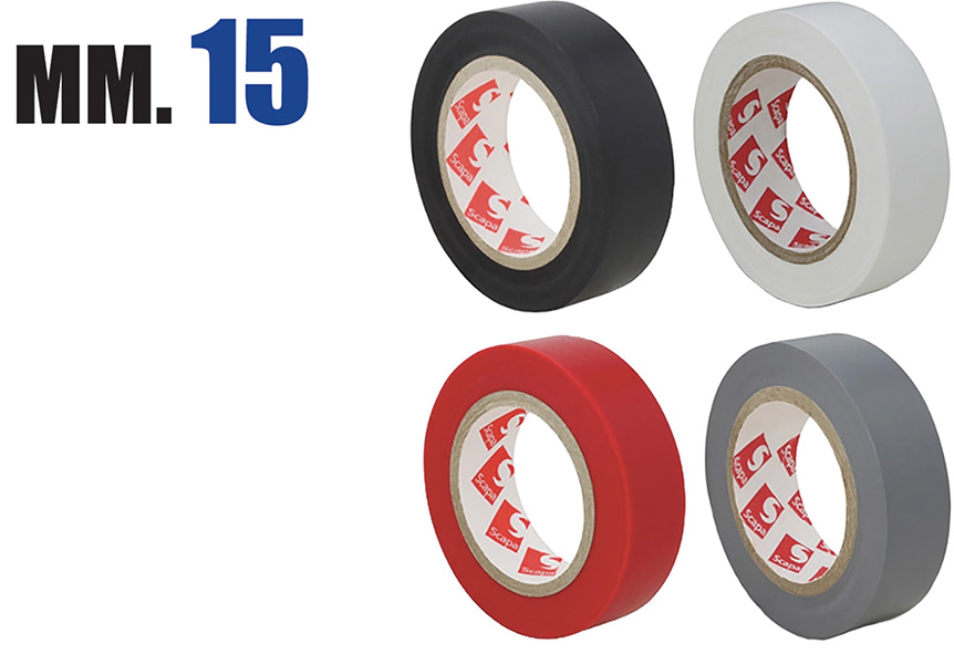 Nastro isolante in PVC per applicazioni elettriche. Autoestinguente. Alta qualit?. Approvato da IMQ, VDE, OVE. Conforme a norme BS3924. Conforme con le direttive Europeee 2000/53 EC. Per temperature da 0?C a + 90?C. Spessore mm.0,13.