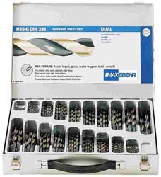 Punte elicoidali cilindriche DIN 338 d.P. interamente rettificate. EXTREME-CUT. Valigetta in metallo assortimento pz.124: d.mm.1 pz10 - d.mm.1,5 pz10 - d.mm.2 pz10 - d.mm.2,5 pz10 - d.mm.3 pz10 - d.mm.3,5 pz10 - d.mm.4 pz10 - d.mm.4,5 pz10 - d.mm.5 pz10 - d.mm.5,5 pz3 - d.mm.6 pz5 - d.mm.6,5 pz3 - d.mm.7 pz3 - d.mm.7,5 pz3 - d.mm.8 pz5 - d.mm.8,5 pz3 - d.mm.9 pz3 - d.mm.9,5 pz3 - d.mm.10 pz3.