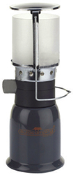Lampada a gas potenza 100W. Accensione piezo. Coperchio inox. Per mercato Europeo. Omologazione CE. Vetro mm.80x80. Base metallo verniciata grigio. Rubinetto per cartuccia 190gr. Made in Italy.