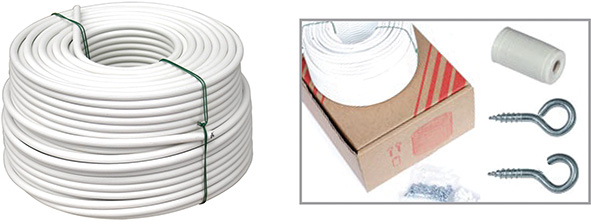 Spiralindo d.mm.4,5 rotolo da mt.50. In scatola con accessori pz.300: pz.100 bussolette, pz.100 occhioli chiusi, pz.100 occhioli aperti.