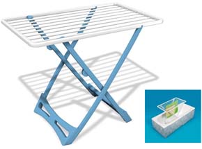 Struttura in resina 100%. Spazio di stenditura mt.10. L'unico stendibiancheria che si infila nella vasca da bagno. Ideale per piccoli spazi.
