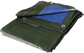 Teloni occhiellati antistrappo. Bicolore verde/blu. Impermeabili. Utilizzi vari in edilizia, agricoltura, nautica, campeggio e tempo libero.