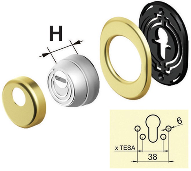 Protezione cilindro interasse STANDARD d.mm.50. Di forma sferica per evitare lo strappo. Sistema rok di nervature per la difesa contro l'attacco con frese a tazza. Mostrina mm.85x65.