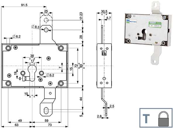 Blocca aste per porte blindate. Entrata 63. Apertura interna ed esterna con cilindro non in dotazione, da ordinare a parte. Per serrature con corsa aste compresa tra mm.17 e 20. Sistema di bloccaggio in caso di estrazione del cilindro.