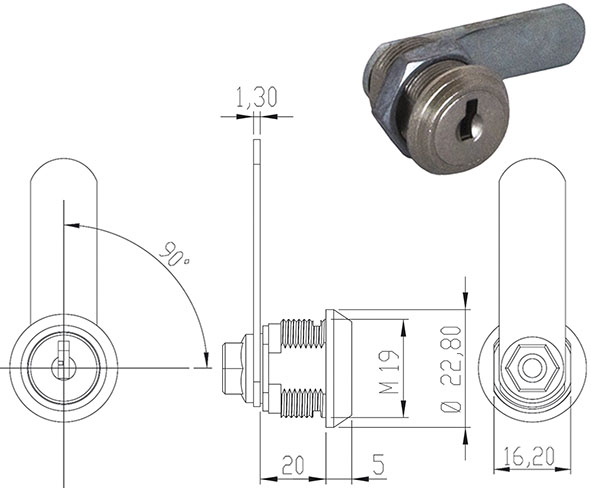 SERRATURE PER MOBILI OMR UNIV.D19 ROTAZ.90 165580