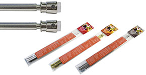 Bacchette per tende regolabili, in acciaio plastificato, con terminali a VENTOSA per utilizzo a molla, corredata di cancanetti per utilizzo in estensione. Nell'utilizzo a molla (a seconda delle molle utilizzate) si possono coprire varie misure comprese da mm.360 a 600. Nell'utilizzo in estensione si possono coprire misure comprese da mm.400 a 600. Disponibile in 3 finiture.
