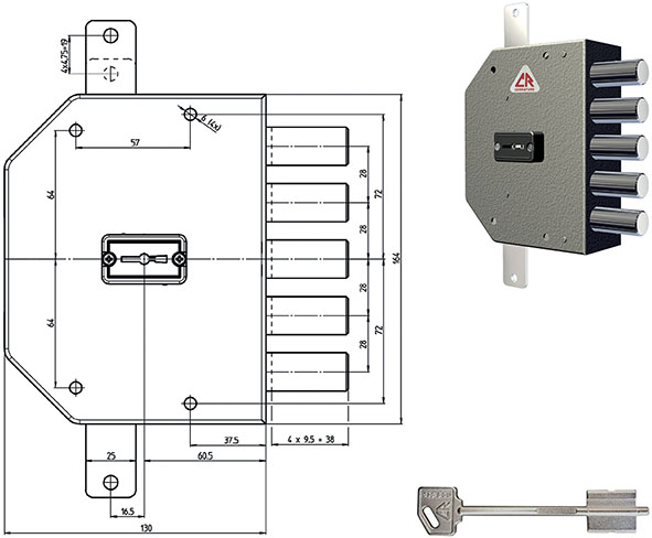Serratura doppia mappa da applicare verniciata. Con dispositivo NO ENTRY. Triplice con 5 catenacci. Entrata 60. Corsa catenaccio mm.38. In dotazione 3 chiavi (ns.cod.882414 oppure 847370), ferrogliera, bocchetta e viti. Senza aste (ns.cod. da 847350 a 847352).